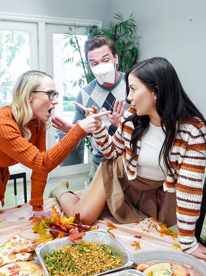 Вот они долгожданные праздники. Близкие собираются вместе за большим столом и весело проводят время за вкусной едой и приятными разговорами. В отличие от предыдущих праздников на этот раз герои решили включить еще и хороший секс. Стол еще не накрыт, а самки уже почувствовали твердый ствол в своей киске...